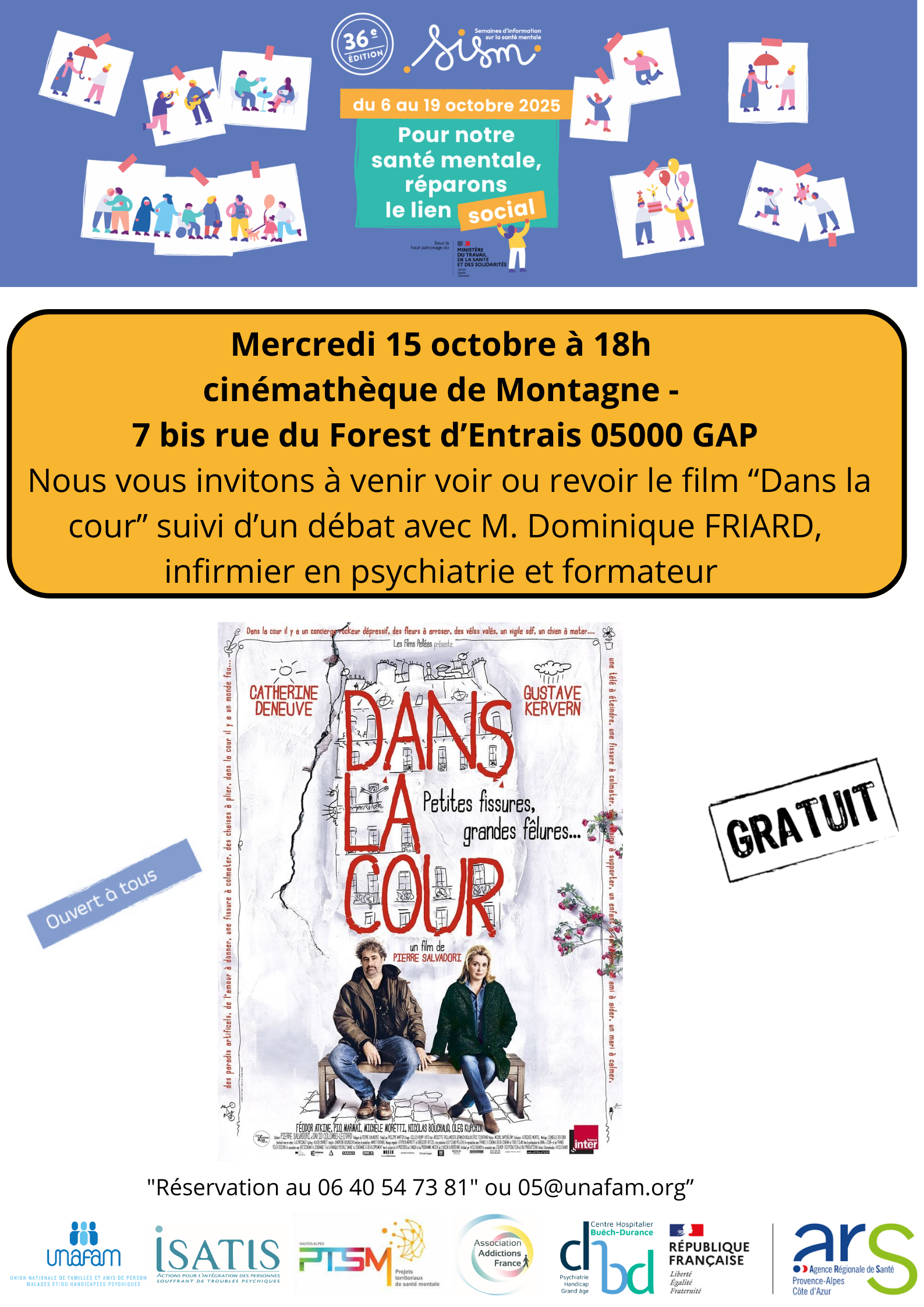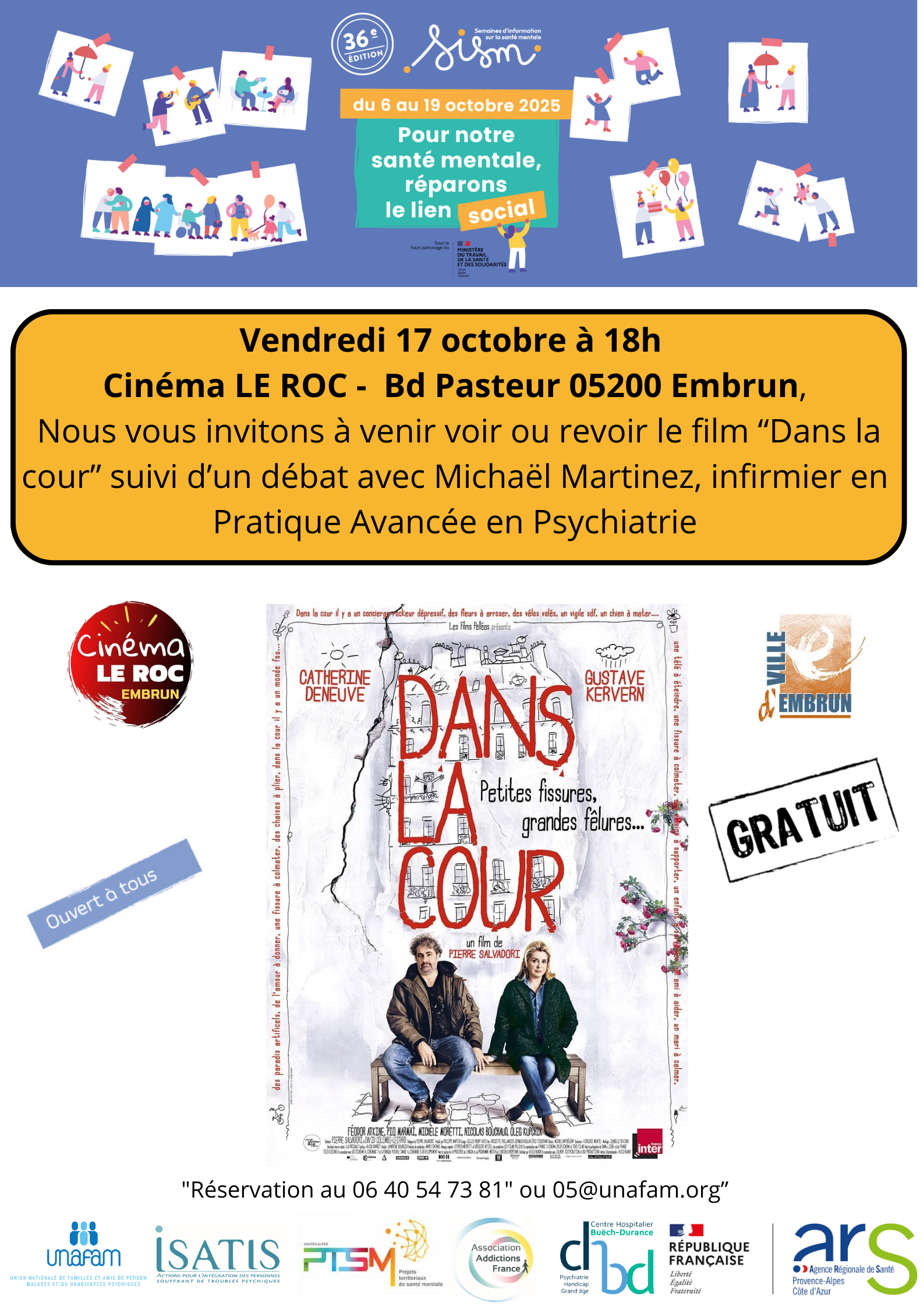 Dans le cadre des SISM (Semaines d'Information sur la Santé Mentale), des Cinés-débats sont proposés sur tout le territoire haut alpin.